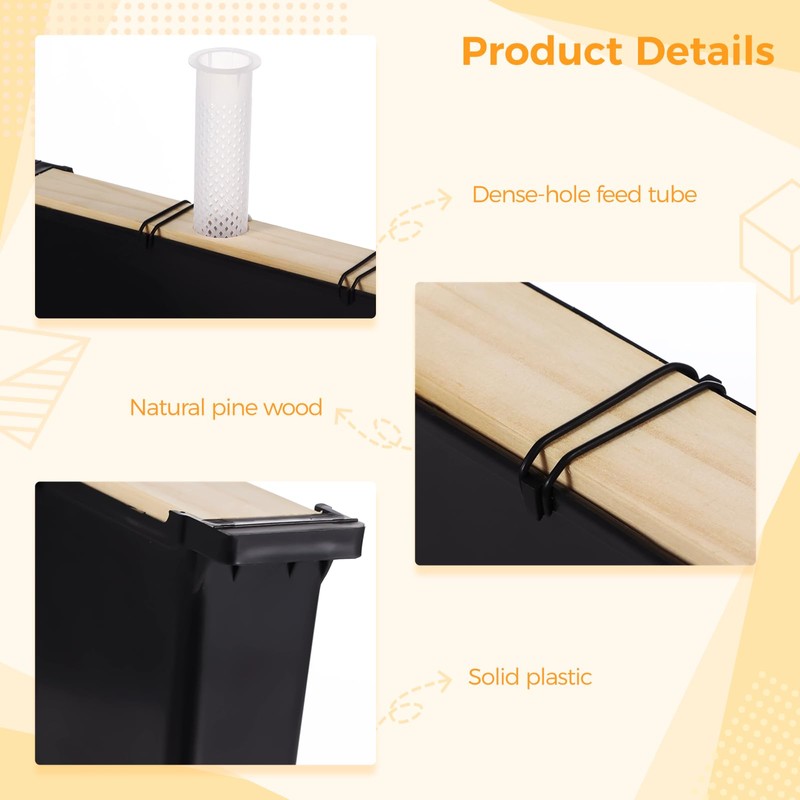 • 【Quality and Safe Materials】Crafted from quality pine wood and plastic, our beehive feeders are lightweight yet sturdy, resistant to deformation or breakage, ensuring long-lasting use. Additionally, they are odor-free, ensuring safety for both bees and humans