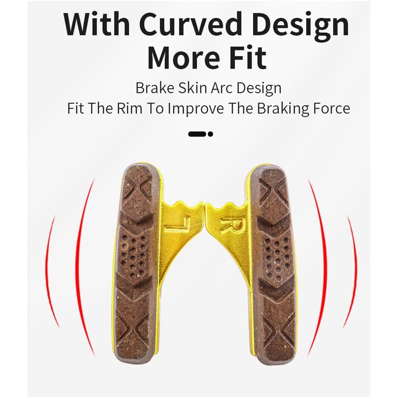 - 【With Curved Design】 More Fit Brake Skin Arc Design Fit The Rim To Improve The Braking Force.