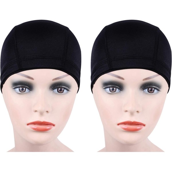 2 Pcs Black Dome Cap Wig Caps Stretchy Wig Cap with Wide Elastic Band for Making Wig (Black)