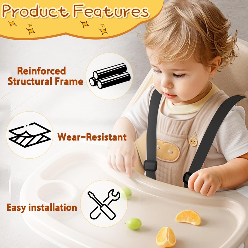 - Enhanced Safety: In case of an accident, high chair harness secures the child firmly, preventing falls and ensuring safety