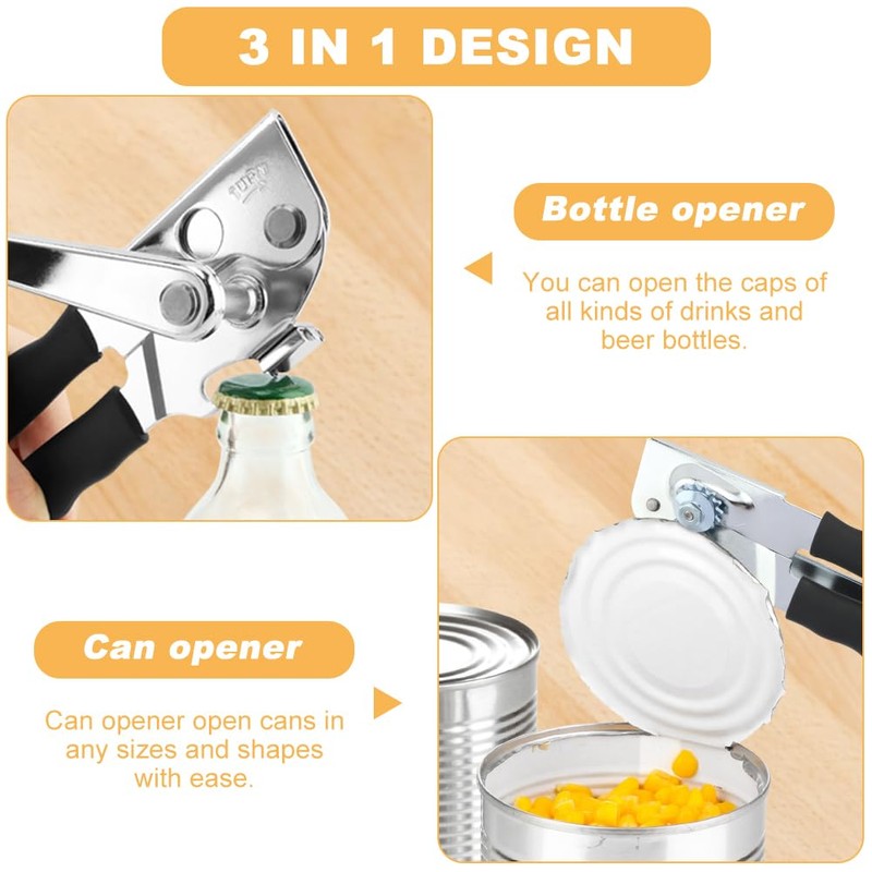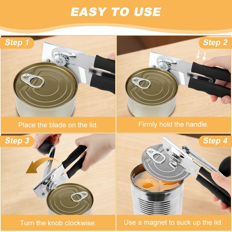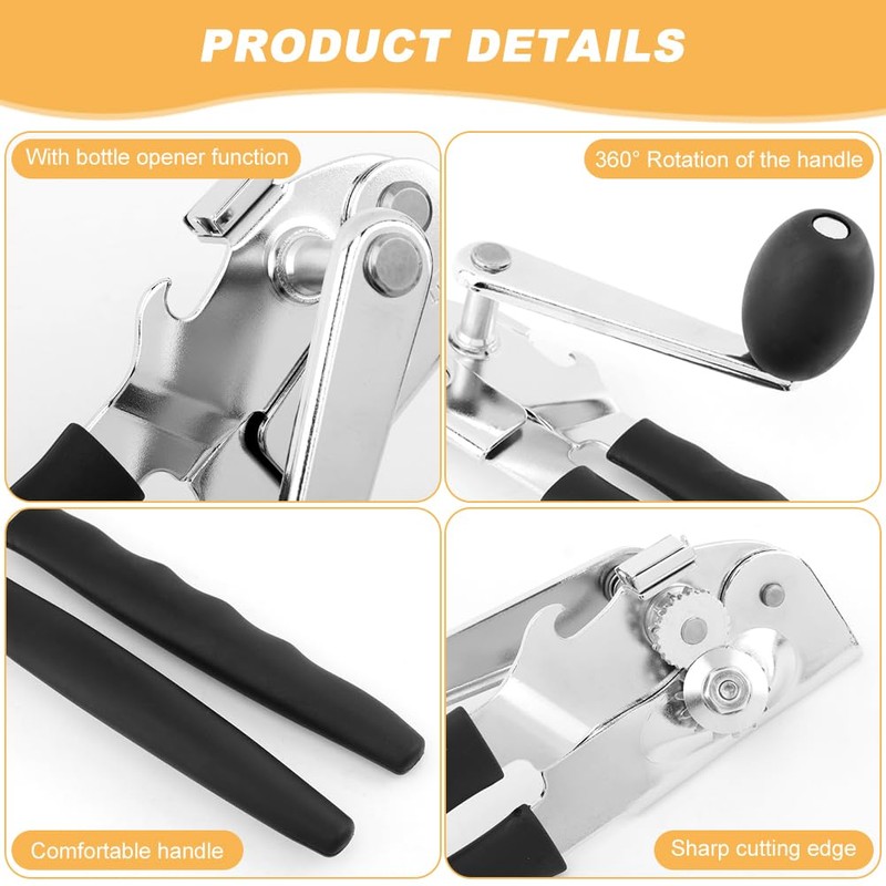• 【Excellent Quality】Our can opener is made of food-grade stainless steel and odorless resin, with a very sturdy body that will not bend or break. High-precision gears can easily open cans and keep the edges of the cans smooth; you don't have to worry about your fingers being cut by the bottle mouth when scooping food; the can opener gears are hard but not sharp, replacing the traditional pointed blade design, so you don't have to worry about getting hurt during use.