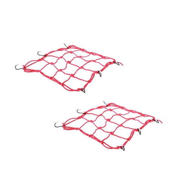 2 PCS Cargo Net,11.8 inch x11.8 inch Elastic Rack Storage Net with 6 Adjustable Hooks for Bike Bicycle Motorcycle (Red)
