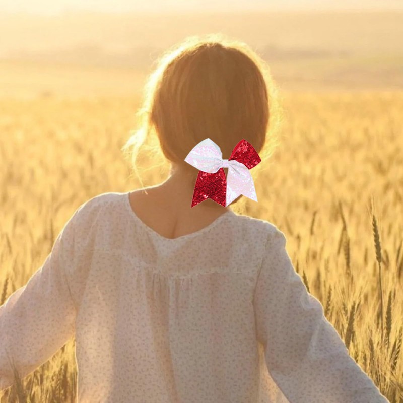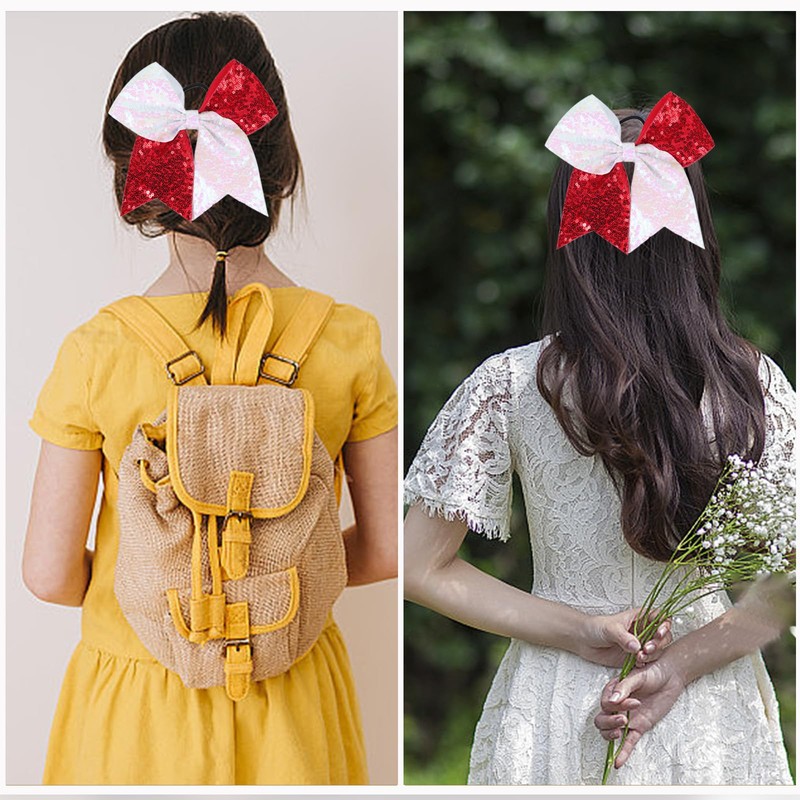 2 Pcs Cheer Bows, Cheer Hair Bows, Cheer Accessories, Red and White Hair Bow, Cheer Bow, Cheer Bows Set, Sequin and Sparkle Ponytail Accessories for Cheerleading, Dance (Red, White)