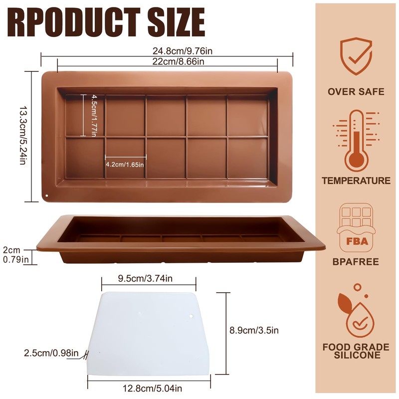 • Easy to use &Clean: These chocolate bar molds are easy to fill, pop out, and clean. It requires only a simple rinse with water after using to remove stains quickly, also can be used in the dishwasher.