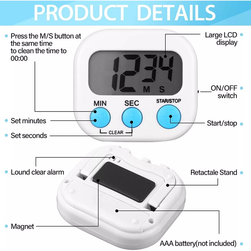 2 pcs Digital Large Kitchen Cooking Timer Countdown Clock Loud Alarm Magnetic
