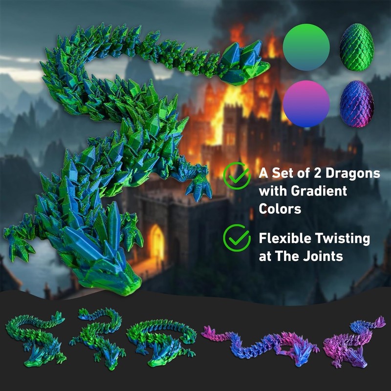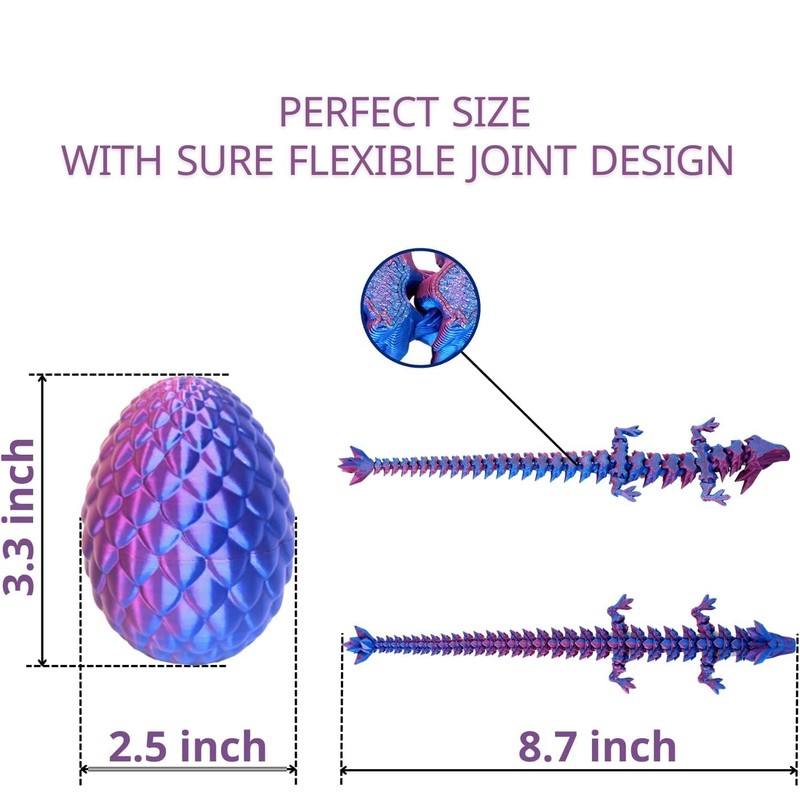 - 【REALISTIC 3D PRINTED DRAGON】Crafted from durable PLA material, our 3D dragon egg features a unique articulated design that allows for flexible posing and movement. Experience lifelike details and long-lasting durability with this captivating dragon companion!