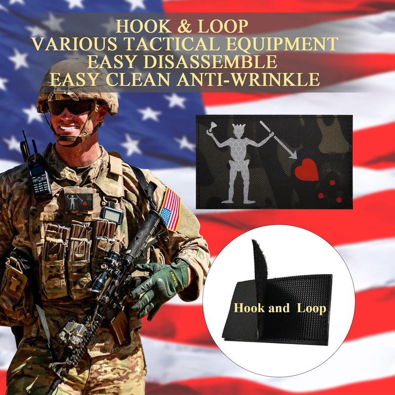 - 2 PCS Blackbeard Edward Patch,Reflective Patch,Black Camo,Size:4.33x2.75 Inch,Comes with a Loop Tape of the same size;