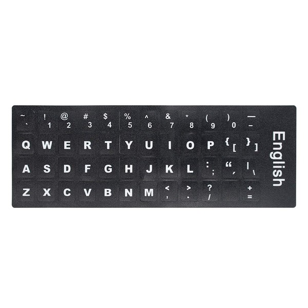 - Package contents: 2 pcs of laptop keyboard stickers (Black Background & White Letters).