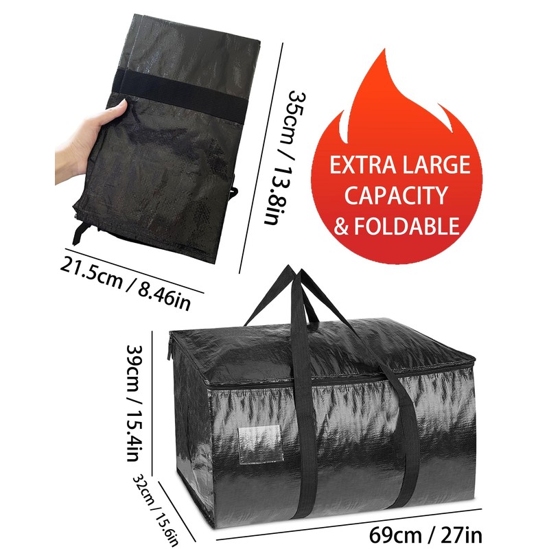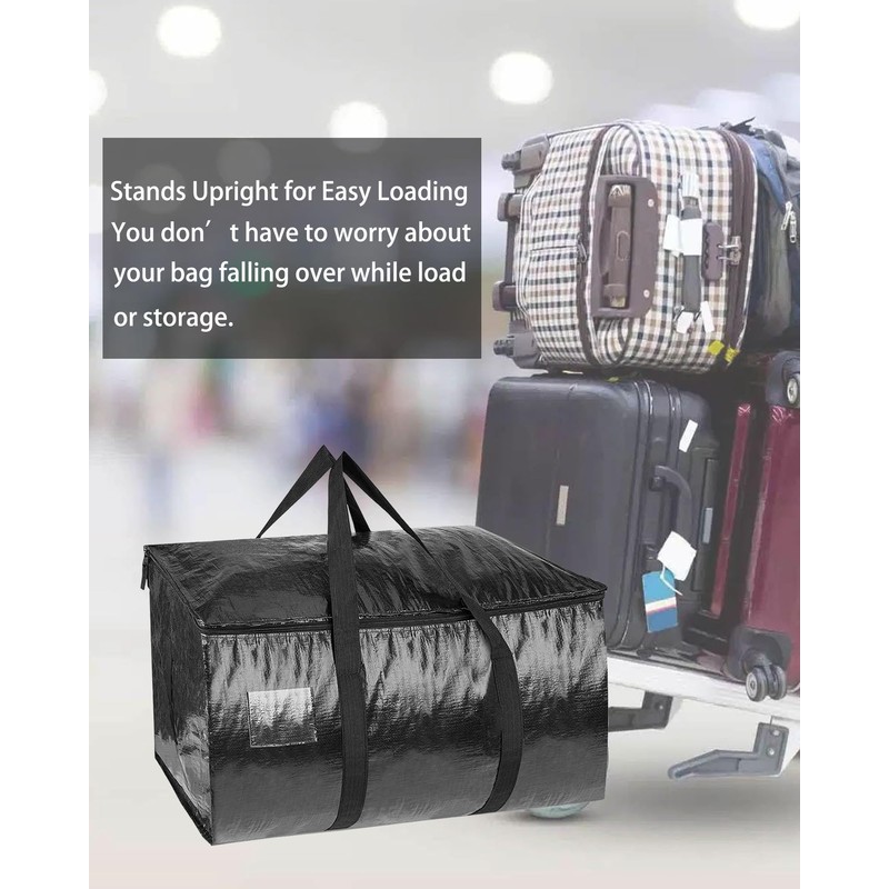 2 Pcs Extra Large Moving Bags YQBOOM Foldable Heavy Duty Storage Bag Strong Handles and Zippers Organizer Bag Storage Tote for Space Saving, House-Moving, Traveling – Black