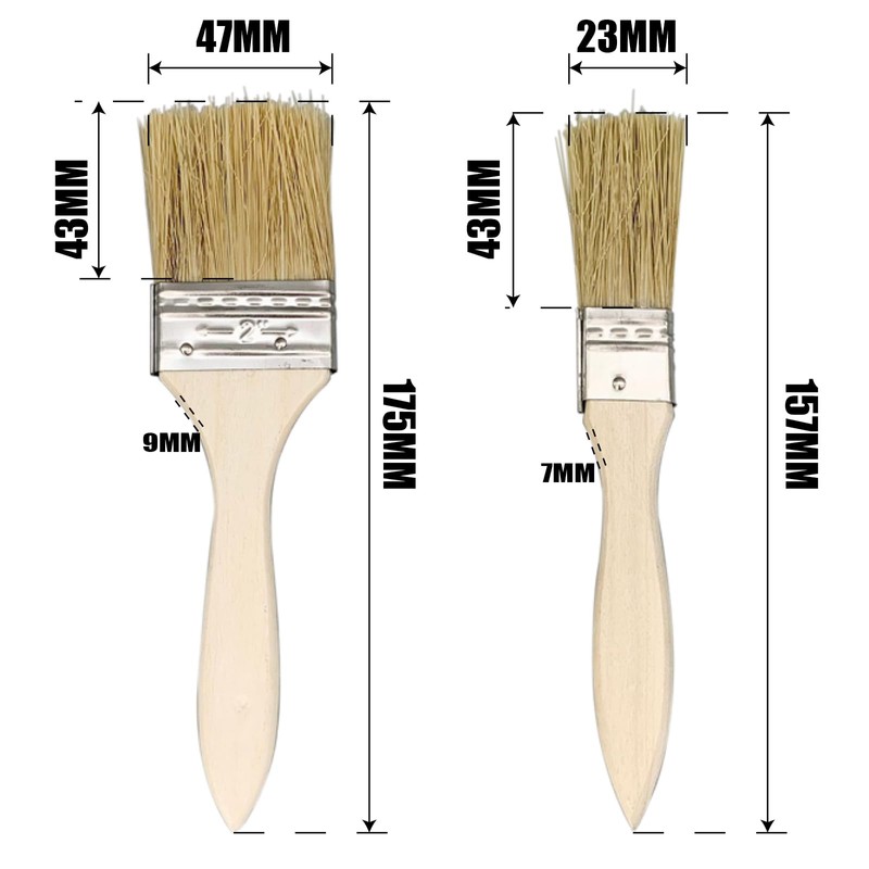 -Our pastry brushes for baking offer the perfect blend of functionality and quality. Available in two sizes, they suit various cooking tasks, from delicate pastries to hearty roasts. With a non - slip ergonomic wooden handle, they provide a comfortable grip for precise control. Cleaning is easy, as they’re dishwasher - safe or can be hand washed. Made from durable wood, they’re food - safe, resistant to rust and melting. Versatile for a range of uses, these brushes are a must - have for both professionals and home cooks. Specifications: Name: Pastry brushes Material: Wooden Size: As shown in the figure Color: As shown in the figure Package Included: 2 x pastry brushes