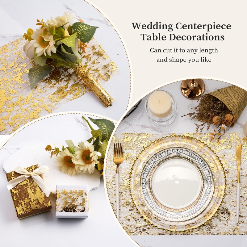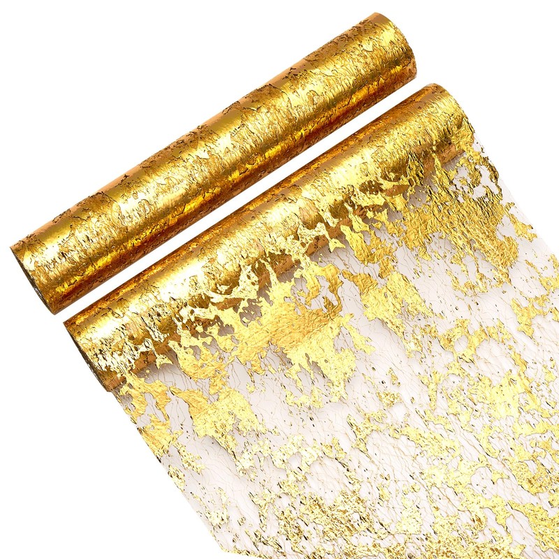 - 【What You Get】 The package comes with 2 rolls of gold table runner with mesh, amounts are sufficient to meet your daily or festival decoration demands.