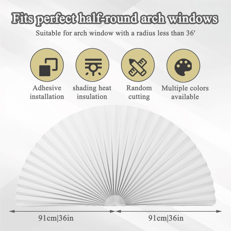 - Cuttable Design: Our half circle window shade is designed to be flexible and can be cut to the specific size of your window. After measuring the size of the window, follow the installation steps provided to ensure a precise fit without any errors. This design of arch window shade allows you to not worry about problems such as the wrong size.
