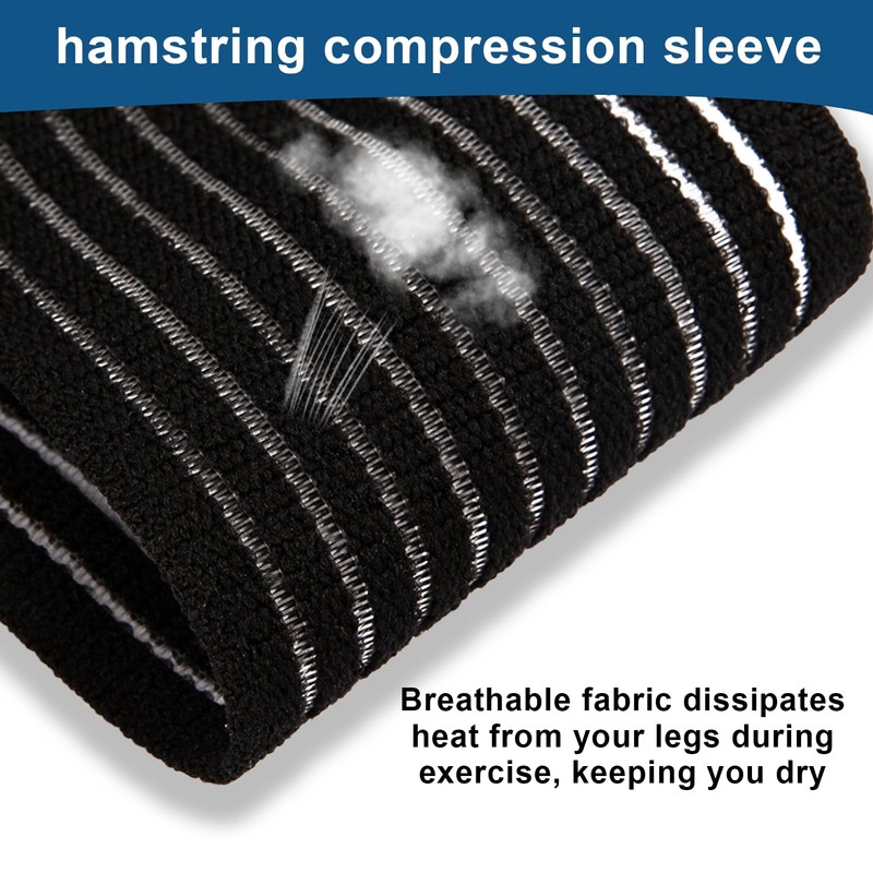 The upper hamstring compression sleeves are versatile compression bandages that provide 360° support for the thighs, calves, knees, and even arms