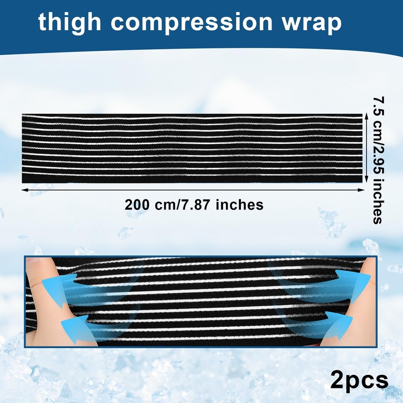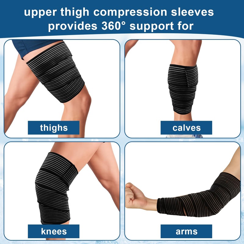 - 【Multipurpose】The upper thigh compression sleeves are versatile compression bandages that provide 360° support for the thighs, calves, knees, and even arms. The unique compression feature of our product is beloved by many. The compression sleeve for thigh With dimensions of 200cm/7.87 inches in length and 8cm/3.15 inches in width, our product is the perfect size to wrap around your target area. These thigh wraps are your go-to solution for support and relief