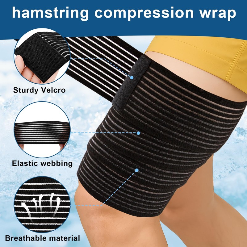 - 【Mitigation and Prevention】The compression bandage wrap can provide stabilizing support for muscles and joints, effectively promoting blood circulation and increasing oxygen supply. This helps alleviate and prevent tendinitis, quadriceps strain, Iliotibial band syndrome, thigh bursitis, cellulitis, varicose veins, swelling, hamstring strains and injury, and thigh contusion & pain. The compression band is the ideal choice for post-surgical and sports injury recovery