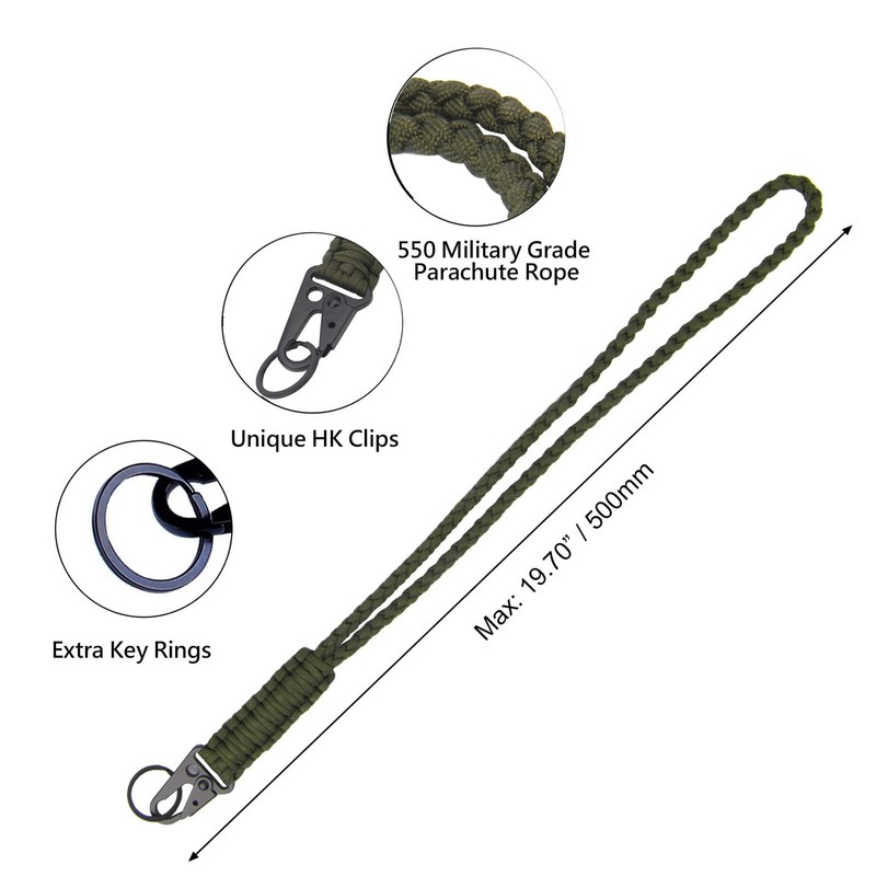 - Premium Material: The heavy-duty paracord lanyard is made of strength 4-strand polyester which is strong and reliable, comfortable and soft to wear, and suitable for outdoor activities. It is equipped with a heavy-duty black plating metal clip and a key ring to lock your things firmly and safely.