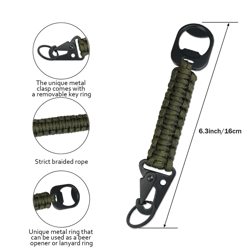 1. These heavy-duty paracord lanyards adopt a classic and simple design, both of the keychains with metal clips and key rings and a Bottle Opener, convenient for hanging items or clips in the backpack, zipper belt ring, and other places.