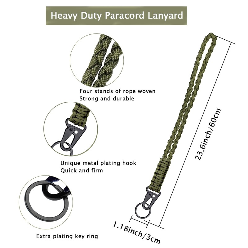 - Premium Material: The heavy duty paracord lanyard is made of high strength 4 strand polyester which is strong and reliable, comfortable and soft to wear, suitable for outdoor activities. And it is equipped with a heavy duty black plating metal clip and a key ring to lock your things firmly and safely.