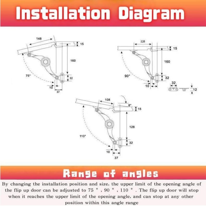 - Easy to install & Adjustable Tension Save time with installation – simply mount the hinges and adjust the lift-up tension with a screwdriver. Adjust the toy box hinges soft close tension with Allen wrench to fit for lids with different weight. Ideal for DIY projects, these adjustable lift-up stays fit cabinet doors from 0.5" to 1.5" thick.Upward door open adjustable angle of 75°,90°,110°.