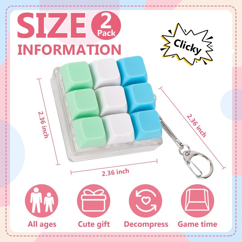 - 【Compact and Portable】This 9 keys keyboard fidget clicker is designed to be lightweight and portable, it can easily fit in your bag or pocket. Whether you are at home, in the office, you can take it out for quick stress relief