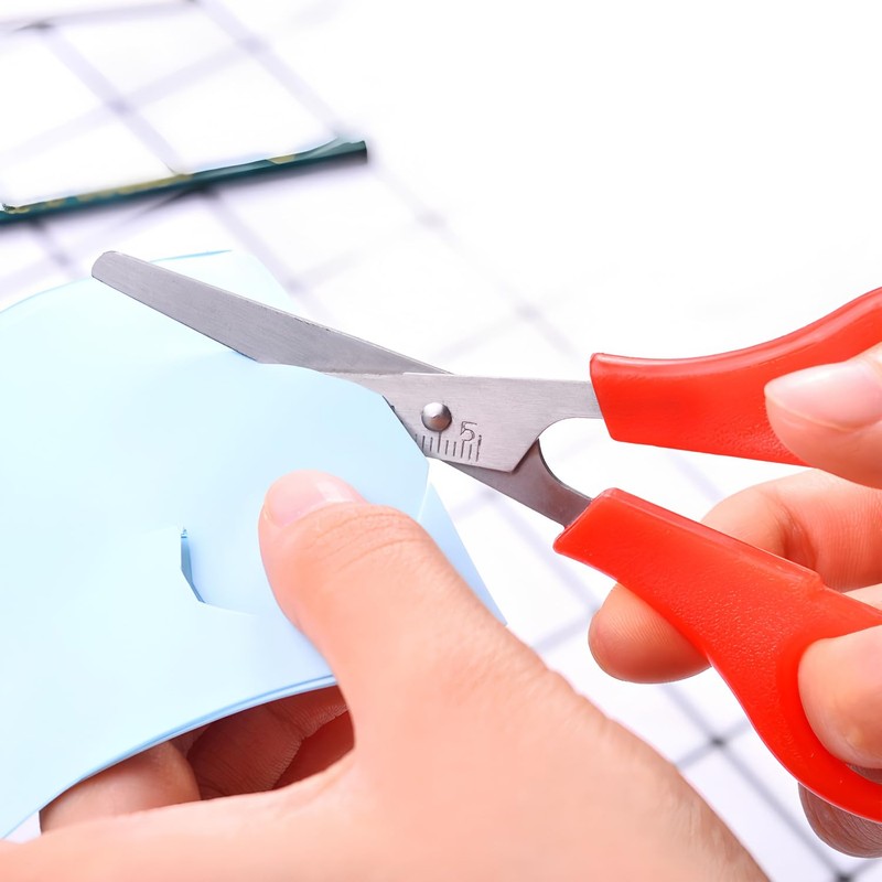 - Cm-Scale Design: Each scissor is designed with a 5 cm scale marked on the blade for easy measurement, helps children to cut the length they want, convenient and practical. The ergonomically designed plastic handles are comfortable for small hands to grip, promoting independence while cutting