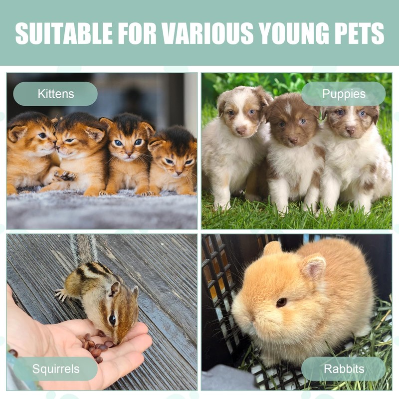 - 【Suitable for Newborn Pets】The 20ml kitten bottle we designed can be used to meet the feeding needs of your newborn pets from 0-45 days. Kitten bottle feeding kit is not only suitable for caring for newborn kittens, puppies, hamsters, squirrels and rabbits, etc., it is also suitable for providing water and medicine for sick adult pets.