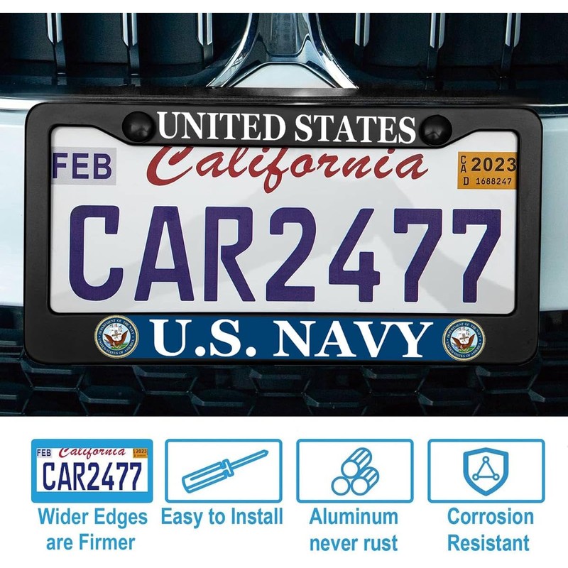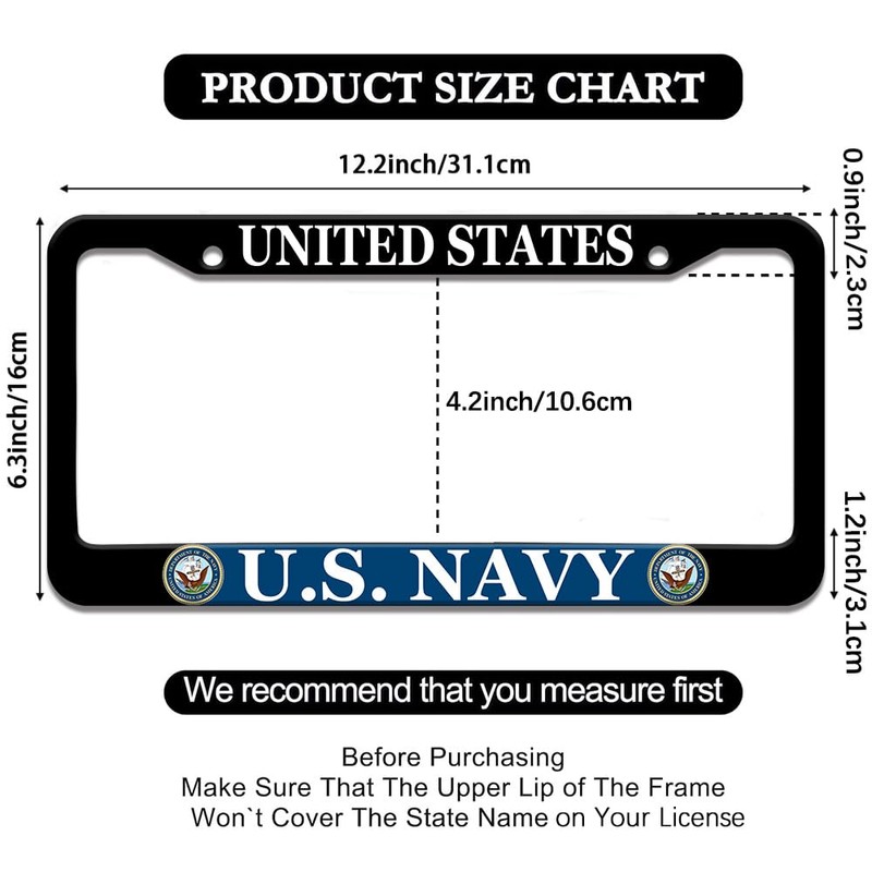 2 Pcs License Plate Frame for U.S. Navy Black Matte Aluminum USN Car Plate Cover Holders with Screw Caps