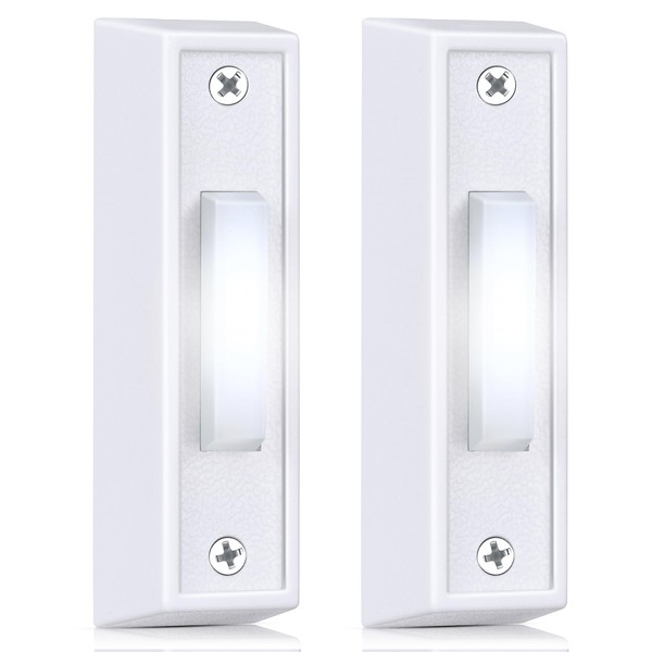 2 Pcs Lighted Doorbell Button, Wired Door Bell Push Buttons LED Door Chime, Wall Mounted Doorbell Switch Garage Doorbell Button (White, White Light)