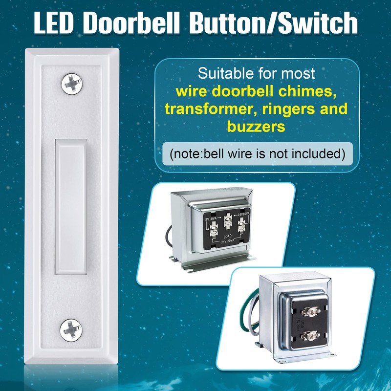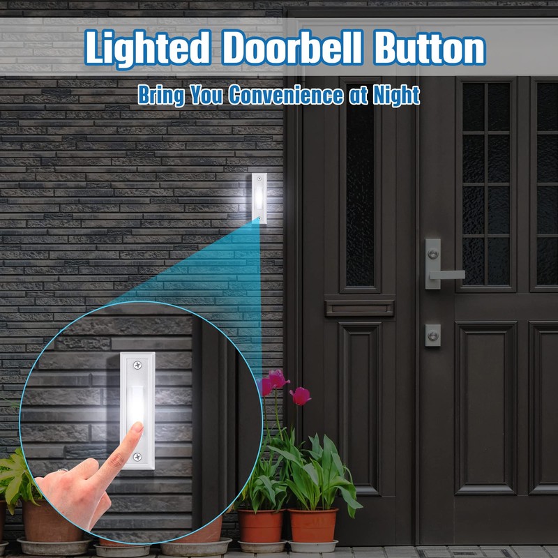 - Lighted Wall Mounted Doorbell Button: the lighted doorbell button switch can be applied on cement or wood surfaces, easy to find in the dark, bring convenience to you at night too