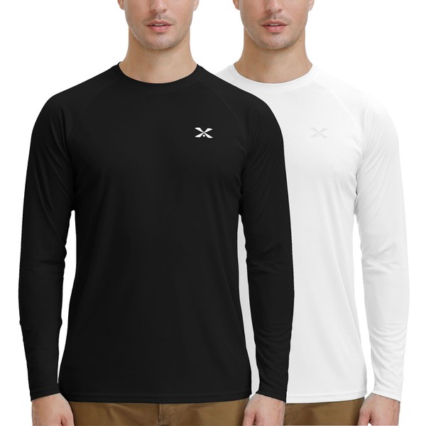 2 Pcs Men's Sun Protection Shirts UV/SPF 50+ Long Sleeve Quick Dry Running Workout T Shirts Rash Guard for Men Black+White-3XL