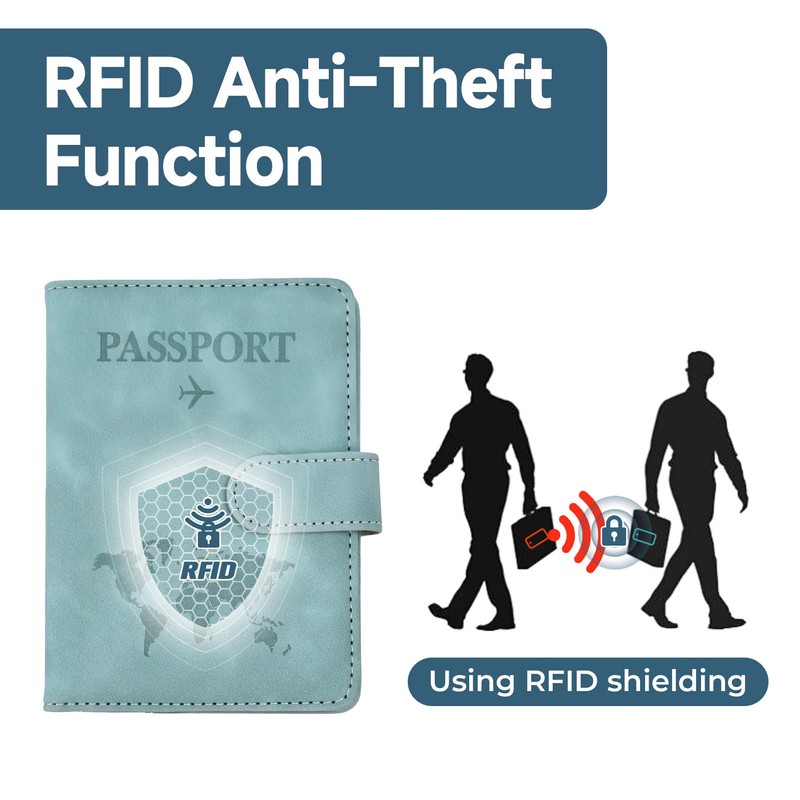 - [RFID Blocking Technology ] This passport holder cover wallet case is designed with upgraded RFID-blocking layers that create a secure barrier against digital theft. It protects your personal information stored in passports, ID cards, and credit cards from unauthorized RFID scans. Whether you’re at an airport, train station, or busy tourist area, you can travel with peace of mind knowing your sensitive data is safe.