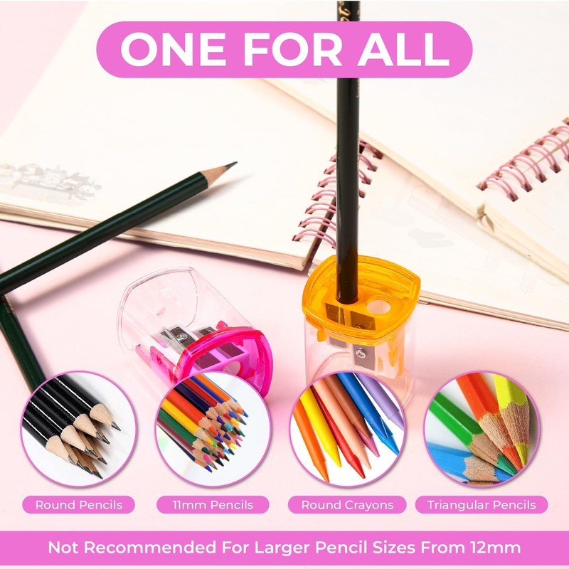 - Versatile Sharpening for All Pencils: Designed with dual holes (8mm and 12mm), this large pencil sharpener is ideal for kids sharpener needs, handling standard, round, triangular, and hexagonal pencils. Perfect for school, office, or art supplies, it offers unmatched convenience for daily use.