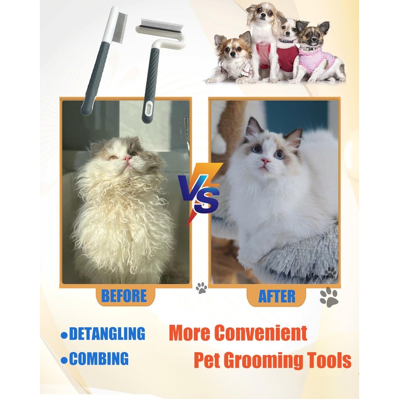 - VERSATILE AND EASY TO CLEAN:The comb function is not limited to pet grooming hair combs, but also compatible with pet flea combs and lice combs. Both long and short haired pets are suitable, and long and short toothed pets are more suitable for all kinds of long and short haired pets. Not only that, but it is also easier to clean. After use, rinse with clean water. Two different shapes of pet grooming comb can meet more usage scenarios.