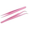 2 Pcs Pink Stainless Steel Tweezers for Eyelash Extensions, Straight and Curved Tip Tweezers Nippers, False Lash Application Tools