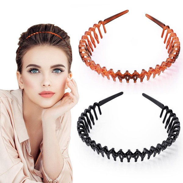 2 Pcs Plastic Tooth Headband for Women Girls, Black Wavy Hair Band Alice Bands Adult Women's Tooth Comb Headbands, Multi-Style Flexible Hair Accessories