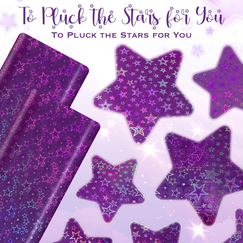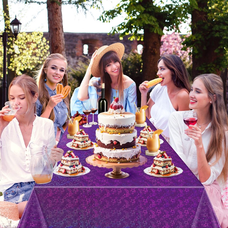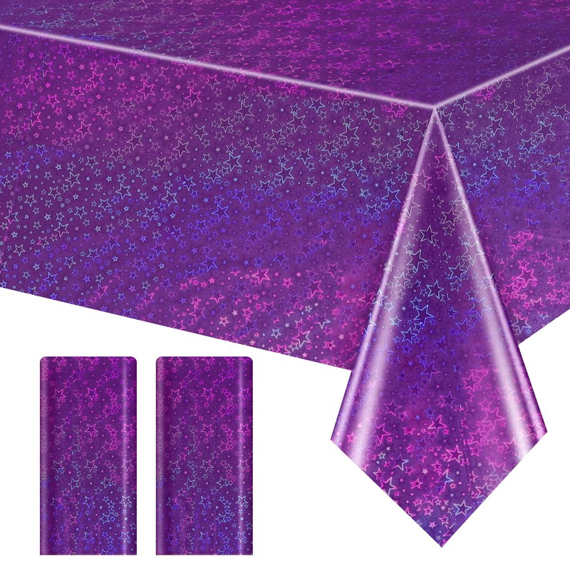 2 Pcs Purple Holographic Laser Tablecloths with Shimmering Stars Table Cover, 40 x 108 Disposable Shiny Table Cloth with Sparkling Stars for Birthday Party, Wedding, Anniversary, Bachelorette