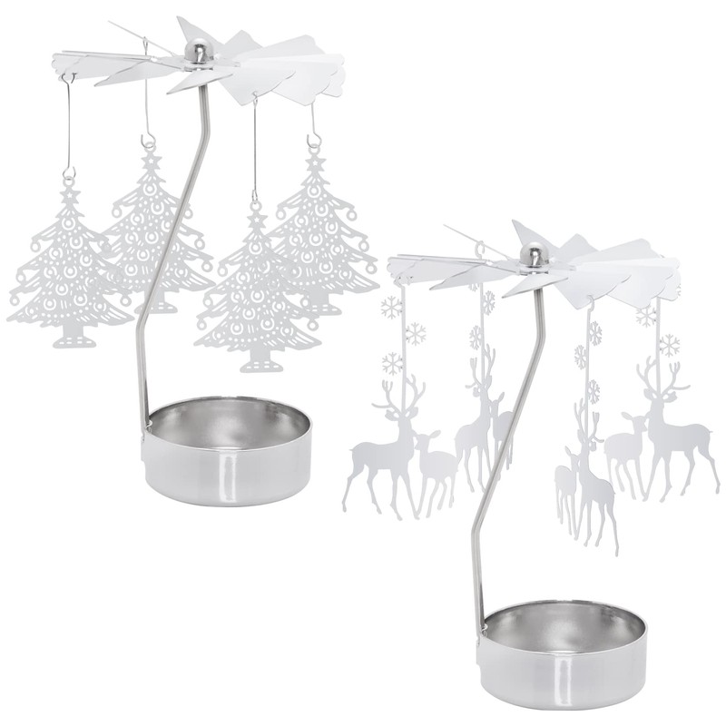 2 Pcs Rotary Candle Holder Spinning Candleholder Christmas Tree & Reindeer Style