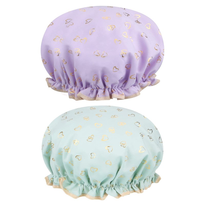 2 Pcs Shower Cap Elastic Band Waterproof Bath Caps Double Layers Reusable With Ruffled Edge Covering Ears for Girls and Women