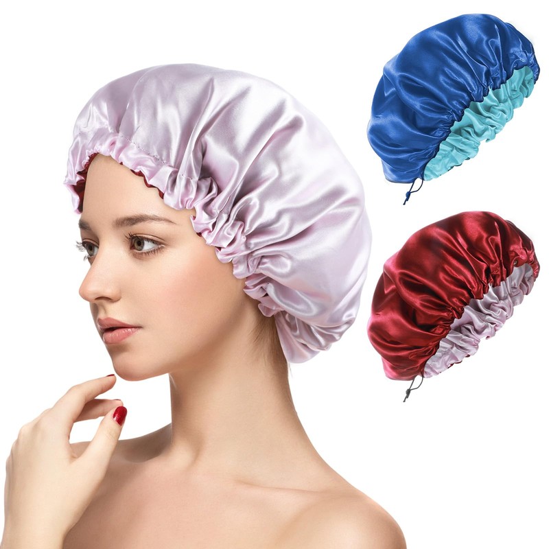 - MULTI-FUNCTIONAL & VERSATILE:Not just for sleeping—use this adjustable satin bonnets for face washing, skincare, bathing, or housework. Its lightweight and foldable design makes it easy to carry and store