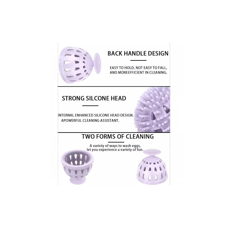 - VERSATILE DESIGN: Silicone egg cleaning brush with soft bristles designed to effectively clean eggs of various sizes while being gentle on shells