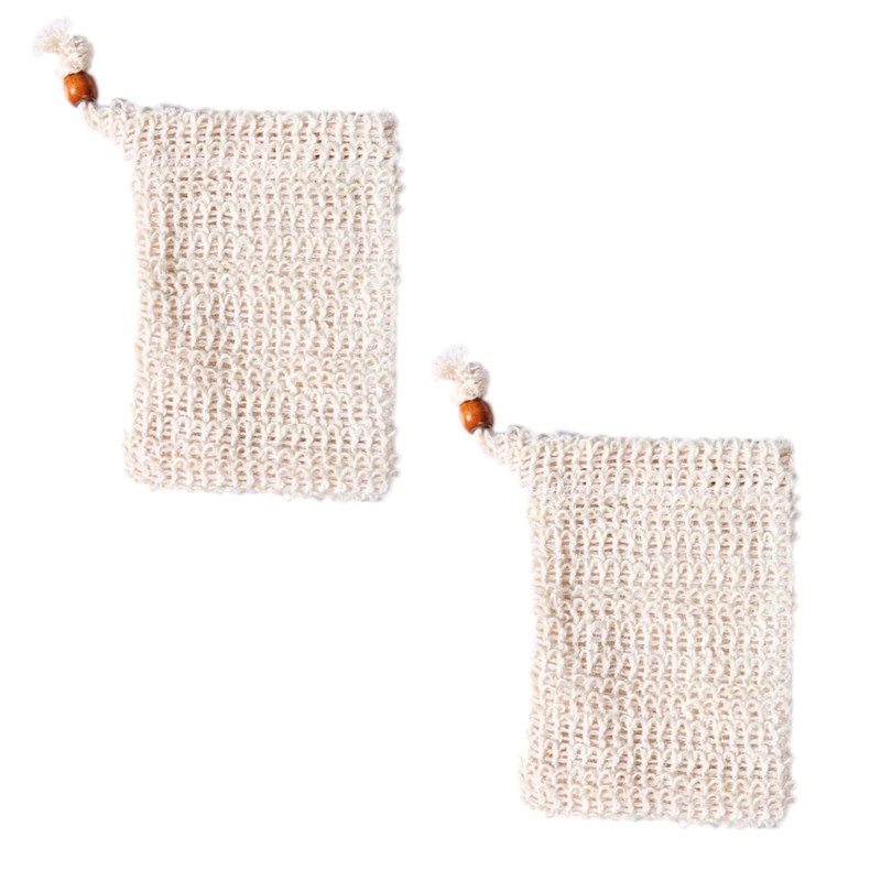 2 Pcs Sisal Soap Bag,Soap Bar Bag with Drawstring,Natural Sisal Exfoliating Mesh Shower Drying soap Holder,Net Double-Layer Durable Soaps Bar Bags,for Foaming, Drying Exfoliation Soaps