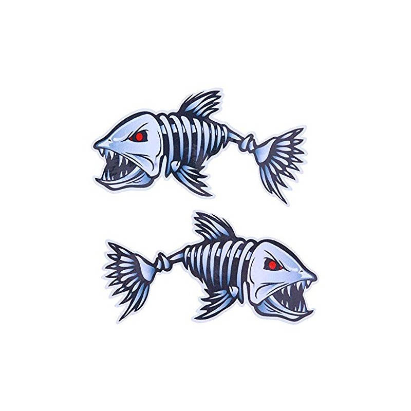 2 pcs Skeleton Fish Bone Silver Fish Sticker, 5 inches, Left and Right - Waterproof Vinyl Decal for Kayak, Canoe, Boat, Car Bumper