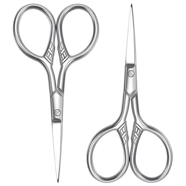 2 Pcs Small Scissors Beauty Professional Small Eyebrow Scissors Stainless Steel Precision Trimmer for Nose Ear Beard Mustache with Textured Anti-Slip Handle Mini Grooming Tool for Women Men