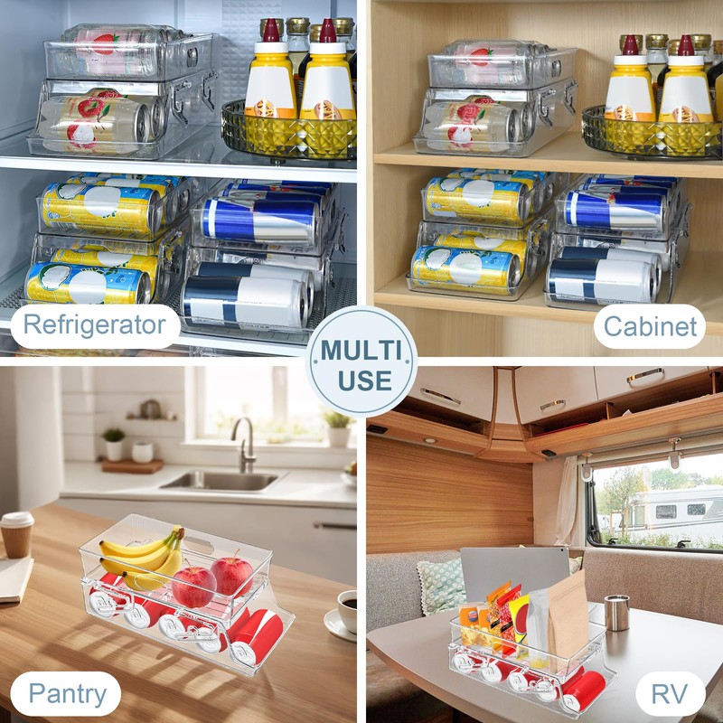 - Double Capacity, Single Space: This 2-pack soda can dispenser set delivers 2X the capacity (24 cans) without extra floor space. Ideal for large families, game days, mini-mart coolers or crowded fridges/pantries. Slim 6.6" width fits narrow gaps