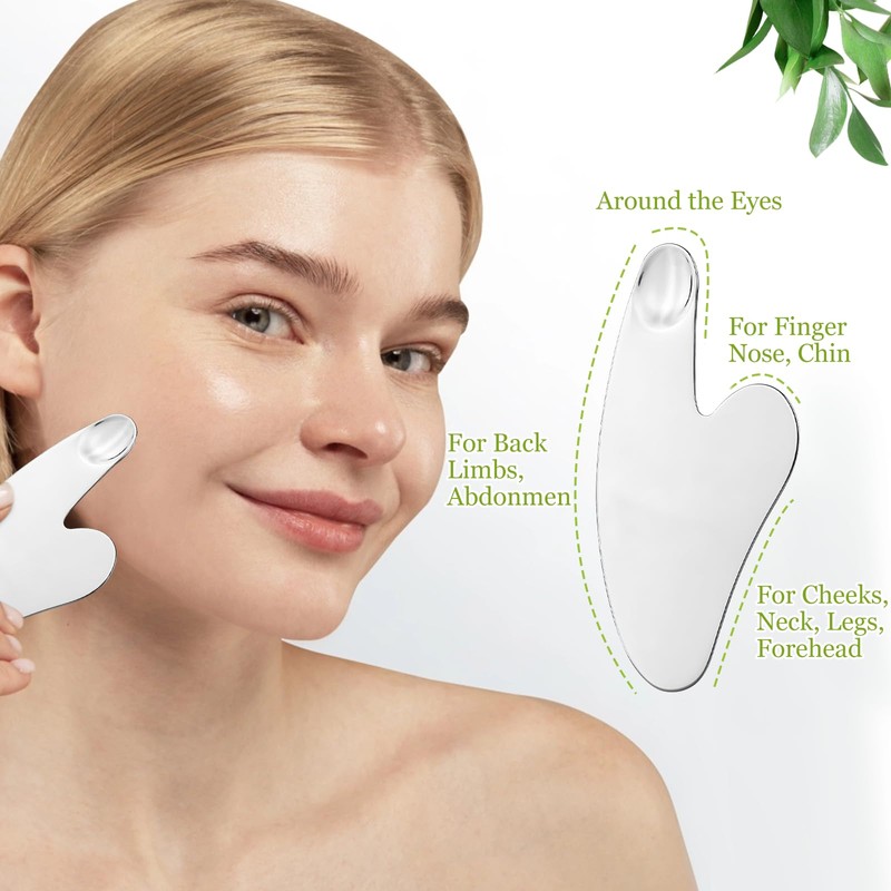 - STAINLESS STEEL GUA SHA TOOLS: This set includes two gua sha boards of different shapes, made from high-quality stainless steel with impact-resistant and crack-resistant properties, unlike fragile stone gua sha boards. Suitable for long-term use, it can be used for facial lifting, lymphatic detoxification, and full-body care.