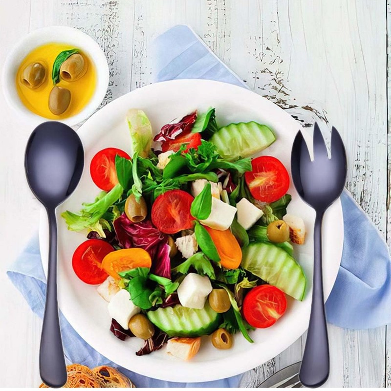 2 Pcs Steel Salad Spoon Salad Spoon Fork Serving Set Salad Mixing Dinner Fork for Kitchen Cooking Utensil Cutlery Set Black