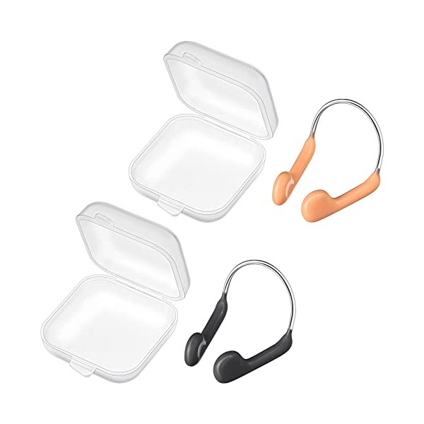 2 Pcs Swimming Nose Clip Unisex Adult Swim Competition Nose Clip Training Nose Plugs Swimming Competition Protector with Storage Cases for Adults Water Sports Pool, Dark Grey and Beige