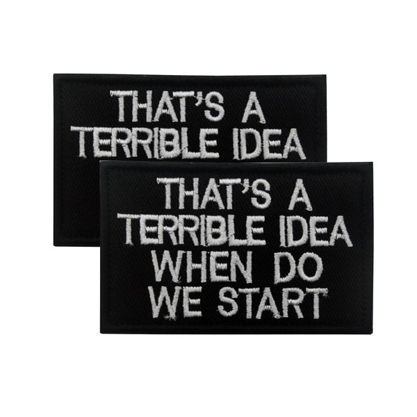 2 Pcs Tactical Hook and Loop Patch, That's A Terrible Idea When Do We Start, Embroidered Hook and Loop Patches for Backpacks, Dog Harnesses, Army Vests, Jackets, Jeans,Hats, Helmets