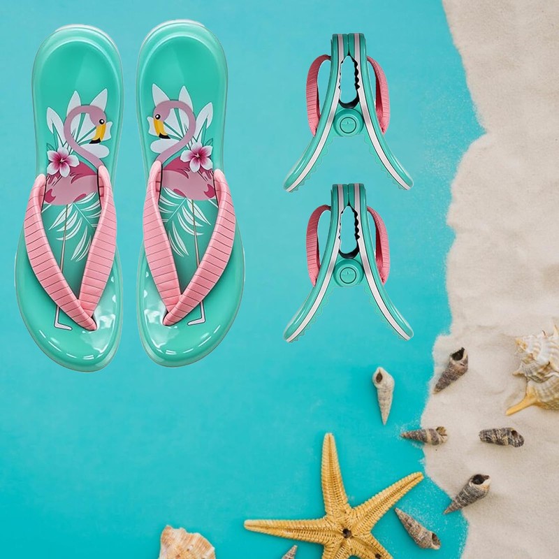 - Cute Design: These towel clips are designed in the shape of a pair of slippers; Very unique; Bright and eye-catching colors; You can find him at a glance when you search for him; Very suitable for use on the beach
