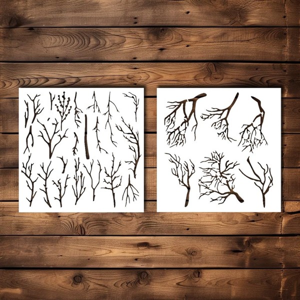 2 Pcs Tree Branches Stencil Template - Reusable Big Large Cherry Trees Decorative Stencils for Painting on Wood, Glass, Wall Rock, Walls, Canvas, Glassware, Spray Painting, Crafts (10x10)